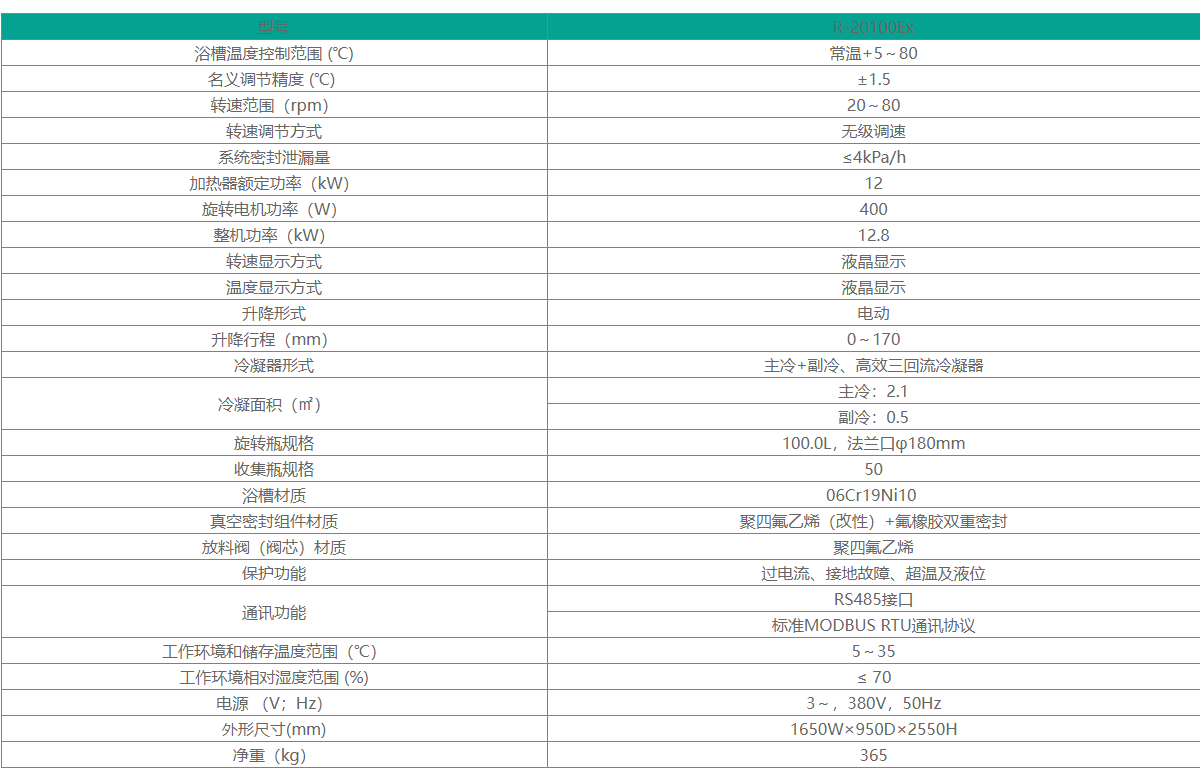 R-20100Ex防爆旋轉(zhuǎn)蒸發(fā)儀玻璃組件材質(zhì)均為3.3硼硅玻璃,具有優(yōu)良的物理、化學(xué)性能。采用液晶顯示屏。浴槽采用電動升降,有液位保護(hù)及防干燒功能。